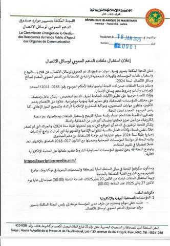 وأعلنت اللجنة أنه ستكون هناك سكرتيريا في مباني السلطة العليا للصحافة والسمعيات البصرية في نواكشوط، جاهزة لتقديم جميع الشروح الفنية المتعلقة بالمنصة.