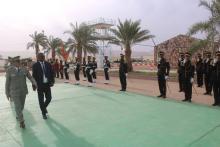 أشرف والي ولاية ٱدرار المساعد سيدي محمد ولد إسويلم رفقة قائد الأكاديمية العسكرية لمختلف الأسلحة العقيد: محمد لمين سيد أحمد عبد المولي فعاليات حفل رفع العلم الوطني بمباني الأكاديمية العس