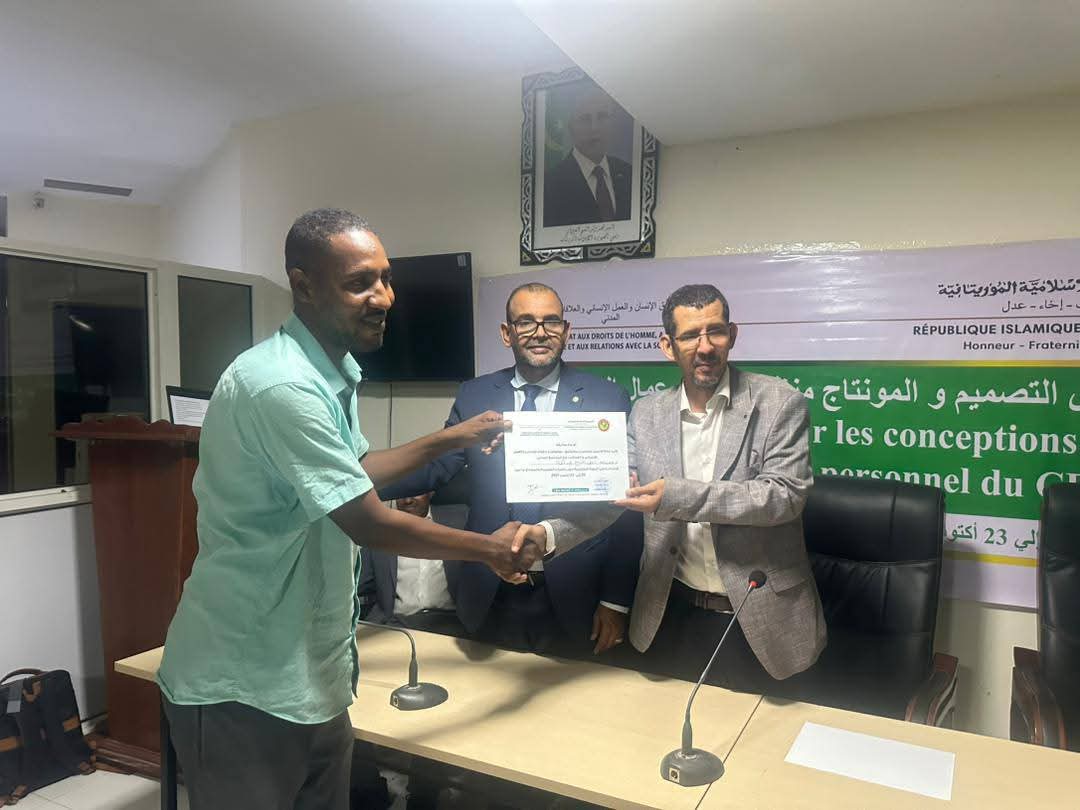 حضر حفل الاختتام المكلف بمهمة بالمفوضية السيد اسلمو ولد صاليحي ، و مدير العمل الانساني ، و المدير الاداري و المالي ، و مدير الاتصال و التكوين و التوثيق.