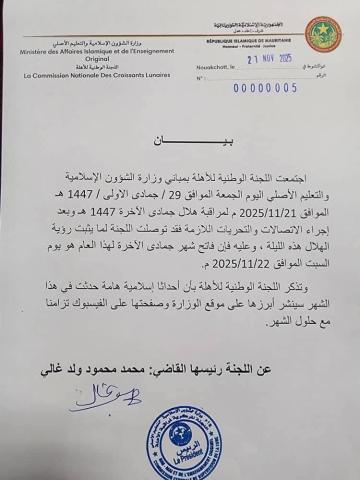 الأهلة تعلن اليوم السبت فاتح شهر جمادي الآخرة