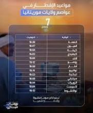 تتراوح أوقات الإفطار اليوم الأربعاء سابع أيام شهر رمضان المبارك 1447 هجرية، في عواصم الولايات الموريتانية ما بين 18:38 دقيقة في مدينة النعمة عاصمة ولاية الحوض الشرقي، و19:14 دقيقة في مد