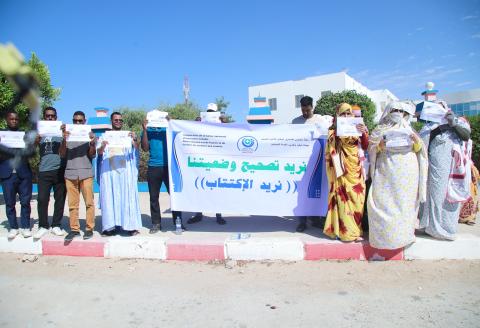 ورفع المحتجون لافتات تطالب بتصحيح وضعيتهم المهنية، من بينها: “نريد تصحيح وضعيتنا”، و”حقوقنا لا ولن تضيع”، و”متعاونون منذ 9، 5، 4 سنوات”.
