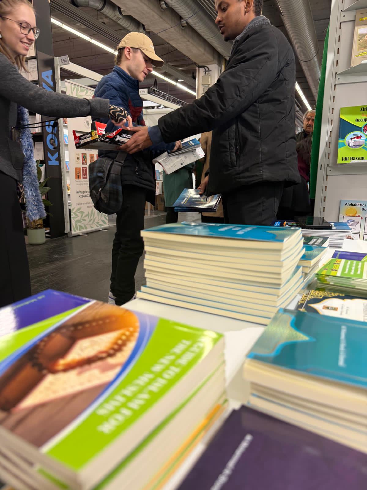 وصرح الحاج محمد الامين..امين مؤسسة رسالة السلام باسبانيا أنه خلال فعاليات المعرض قام وبمشاركة ممثلو مؤسسة رسالة السلام بألمانيا بتوزيع اصدارات المفكر العربي الاستاذ على محمد الشرفاء الحمادي