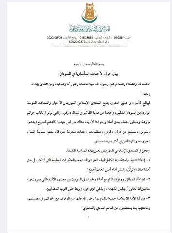 وعبر المنتدى عن إدانتِه واستنكارِه لهذه الجرائم التي تُرتكب في حق أهل السودان وتوثَّق وتنشر أمام أعين العالم أجمع.