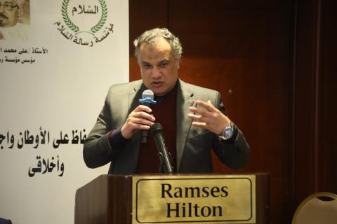 جاء ذلك خلال مداخلة النجار بالجلسة الثانية من ندوة «الحفاظ على الأوطان واجب ديني وأخلاقي»، التي نظمتها مؤسسة رسالة السلام العالمية، على هامش مشاركتها في معرض القاهرة الدولي للكتاب، تحت رعاية المشرف العام للمؤسسة المفكر علي الشرفاء الحمادي، وبحضور نخبة من الشخصيات الفكرية والثقافية والإعلامية.