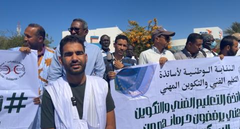 احتج العشرات من أساتذة التعليم الفني والمهنى صباح اليوم، أمام مبنى الوزارة الأولى بوسط العاصمة نواكشوط، مطالبين بالمساواة مع أساتذة التعليم العالي والثانوي والأساسي، في الحق في الحصول على السكن. وفي نفص جدول المداومة الأسبوعية في غالب أيام الأسبوع.