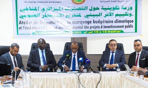 نظمت وزارة المالية، اليوم الأربعاء في نواكشوط، ورشة تكوينية لإعداد آلية التصنيف الميزانوي المناخي وتقييم الأثر البيئي لمشاريع الاستثمار العمومي، بهدف تعزيز إدماج البعد المناخي في مسار إعداد الميزانية وتحسين جودة الوسم المناخي.