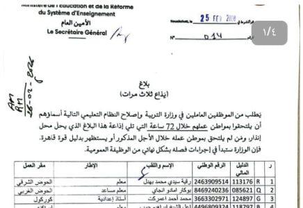 إنذار رسمي لـ17 مدرسا بسبب الغياب عن العمل
