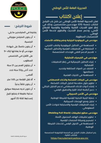 الشرطة الوطنية تفتح باب الترشح لاكتتاب خمسة مهندسين