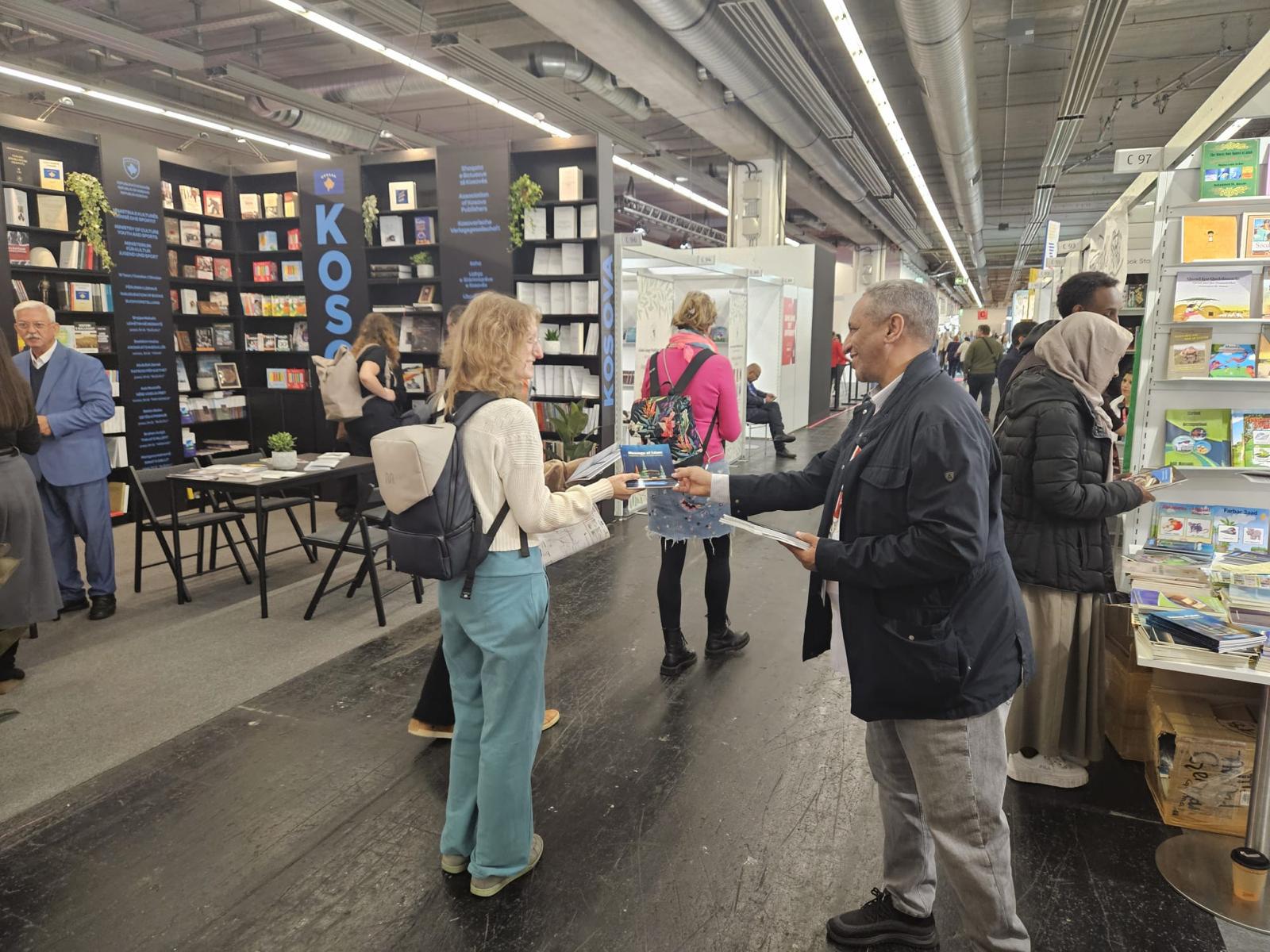 تتواصل فعاليات المعرض الدولي للكتاب المقام في مدينة افرانكفورت الالمانية بحضور وفد من مؤسسة رسالة السلام يضم الاخوين الاستاذ الحاج محمد الامين رئيس مكتب رسالة السلام في اسبانيا ورئيس مكتبها في المانيا وقد لقي جناح مؤسسة رسالة السلام اقبلا واسعا من قبل زوار المعرض حيث تم توزيع العديد من كتب واصدارات مؤسسة رسالة السلام ومؤلفات رئيس مجلس ادارتها المفكر العربي الكبير علي محمد الشرفاء الحمادي .