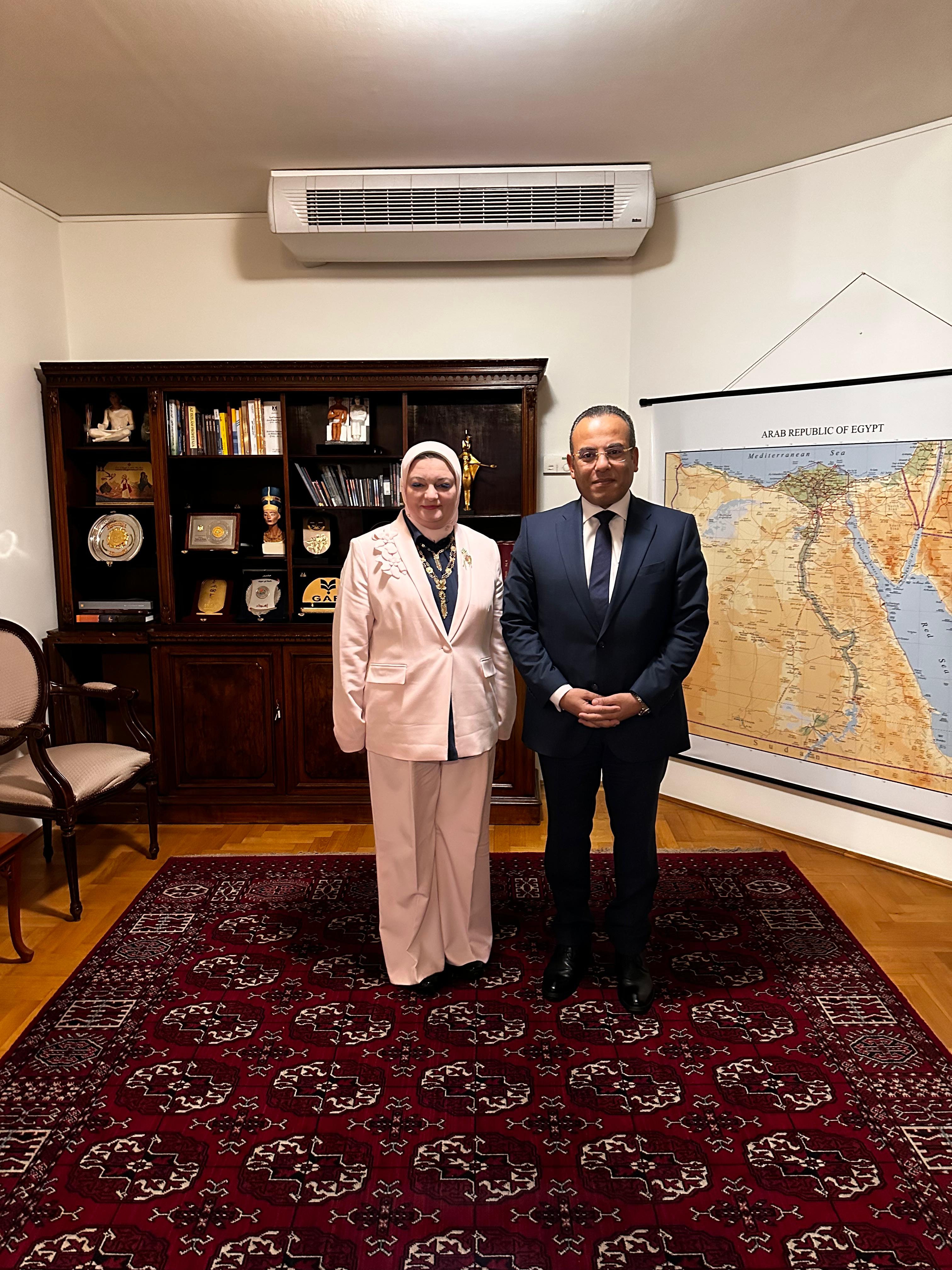 هذا وكانت قد حرصت على استقبال الوفد السيدة الوزير المفوض هبة نجم، التي رحّبت بأعضاء الوفد.