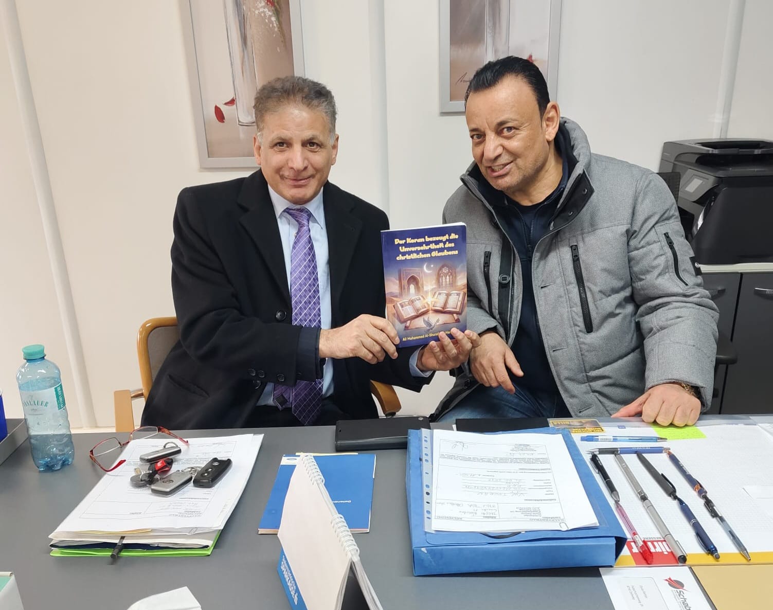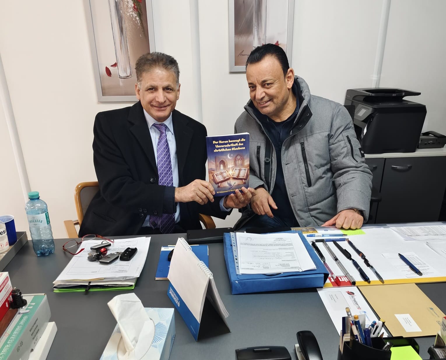 وفي هذا السياق، التقى العبيدي داخل أحد المكاتب النمساوية بأحد المسؤولين في قطاع الأعمال وهو الاستاذ الياس ، بعد تواصل مسبق لشرح مشروع الشرفاء الحمادي. وخلال اللقاء، قدّم له كتيّب الشرفاء المترجم إلى الألمانية "القرآن يشهد بصواب العقيدة المسيحية"، في مكتب تتجلى فيه الرموز الدينية المسيحية، وهو ما أضفى على اللقاء دلالة خاصة تعكس طبيعة الحوار بين المرجعيتين الإسلامية والمسيحية.
